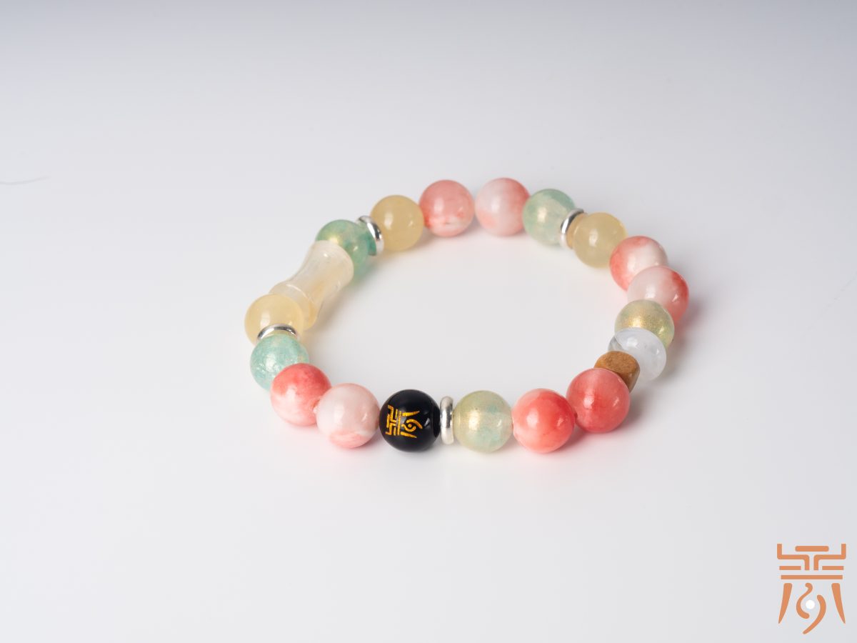 As you glide your fingers over this bracelet, you’ll almost feel the crisp autumn breeze brushing by. The orange beads symbolize dreams—those bright aspirations that light up your days—while the peach-pink beads represent late autumn, with all its warm, mellow charm. When you wear this piece, may a wonderful, fulfilling life always stay by your side.