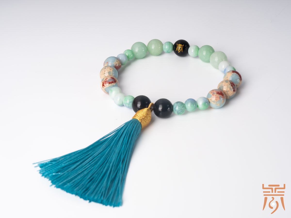 As you glide your fingers over this bracelet, a delightful sense of joy will wash over you. The green beads symbolize dreams—those aspirations that light up your days. When you wear this piece, may a wonderful, fulfilling life always stay with you.