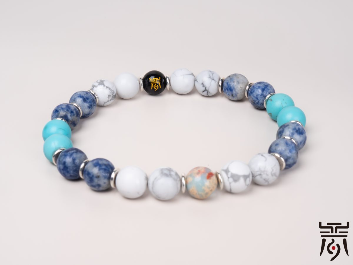 As you running your fingers over this bracelet, you’ll feel the joy of a bountiful harvest. The white beads symbolize abundant harvests, while the cyan ones stand for aspirations and dreams. When you wear this bracelet, may a life of prosperity and happiness always be with you.