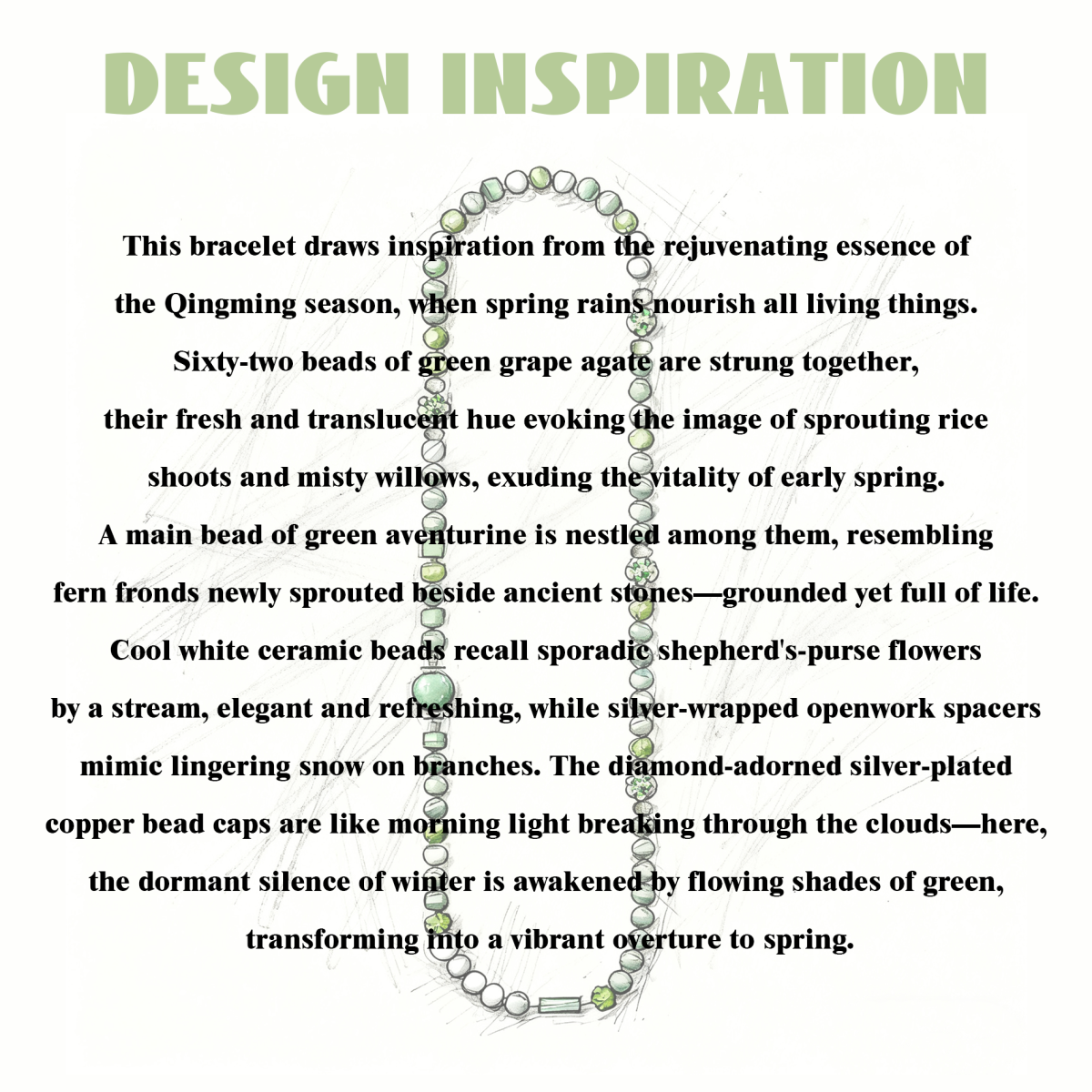 As you running your fingers over this bracelet, you’ll feel the longing for loved ones. Cyan symbolizes the gentle, lingering rain of spring, while white represents the yearning for dear ones—all echoing the sentiment of China’s Qingming Festival. As each round bead glides gently, let it remind you to cherish your life wholeheartedly.