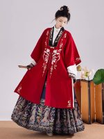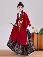 New Chinese-Style Hanfu (Ming Dynasty Inspired): National-Style Gold-Brocaded Horse-Face Skirt (Mianmian Qun) with Stand-Up Collar Shirt